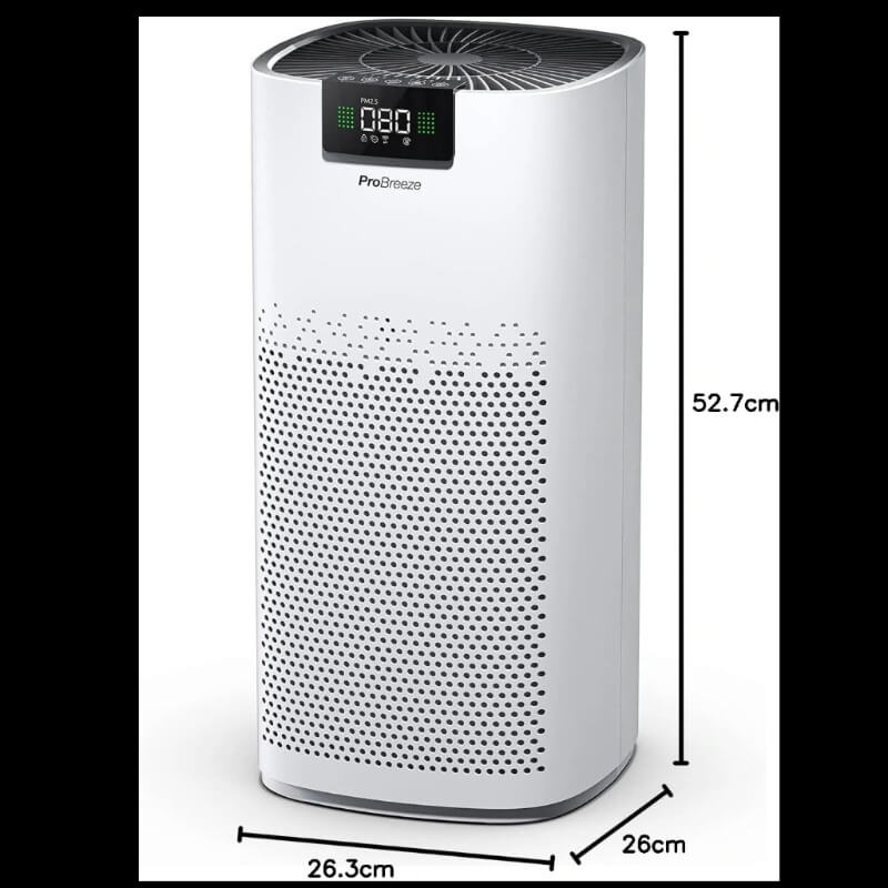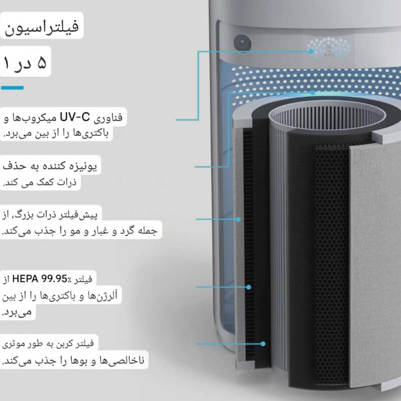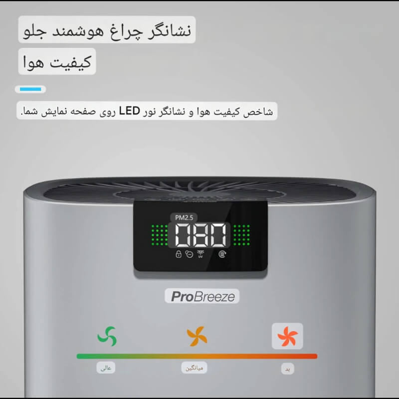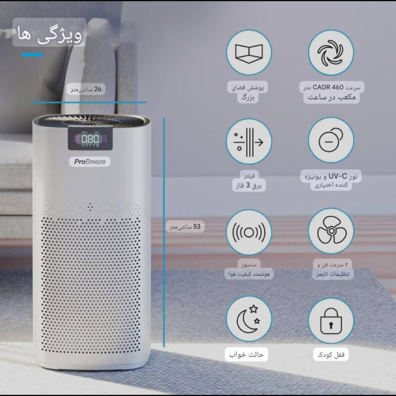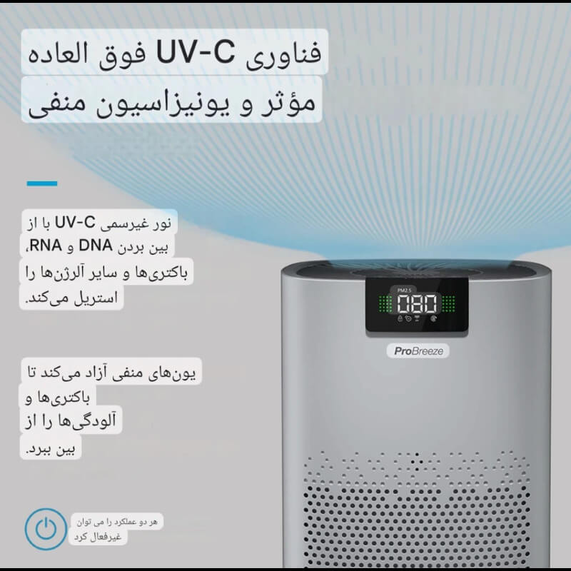 دستگاه تصفیه هوای Pro Breeze PB-P07-EU با طراحی اروپایی و سیستم فیلتراسیون پیشرفته، یکی از کاملترین انتخابها برای بهبود کیفیت هوای خانه و محیط کار است. این مدل با نرخ تصفیه ۴۶۰ مترمکعب بر ساعت قادر است هوای فضاهای بزرگ را بهسرعت پاکسازی کند و برای محیطهایی از ۶۴ متر تا حداکثر ۱۲۰ متر کاملاً مناسب است. گردش هوای ۳۶۰ درجه نیز باعث میشود هوای تصفیهشده یکنواخت در سراسر فضا جریان پیدا کند. قلب اصلی این دستگاه، سیستم پنجمرحلهای آن است که شامل پیشفیلتر برای جذب ذرات درشت، فیلتر HEPA H13 برای حذف ذرات ریز تا ۰.۳ میکرون و لایه کربن فعال برای کاهش بوهای ناخوشایند و دود است. وجود یونساز داخلی با تولید میلیونها یون منفی، به تهنشینی سریعتر ذرات معلق کمک میکند و نقش مهمی در کاهش غلظت آلایندهها دارد همچنین امکان خاموش کردن یون ساز هم وجود دارد. در کنار آن، نور UV-C LED با طول موج ضدباکتری ساختار میکروبی هوا را تخریب کرده و با غیرفعالسازی باکتریها، قارچها و برخی ویروسهای فصلی، سطح ایمنی تنفسی محیط را بهطور محسوس افزایش میدهد. ترکیب HEPA، کربن فعال، یونساز و UV-C میتواند تا ۹۹.۹۵٪ آلایندهها را از هوا حذف کرده و هوایی سالم، تازه و ایمن ایجاد کند. این مدل به سنسور هوشمند کیفیت هوا مجهز است و وضعیت PM2.5 را از طریق نمایشگر رنگی نشان میدهد تا کاربر همیشه از شرایط هوای محیط مطلع باشد. چند سطح سرعت فن، حالت Sleep بسیار کمصدا، تایمر قابلبرنامهریزی و امکان فعالسازی جداگانه UV و یونساز، استفاده از دستگاه را ساده و کاربردی میکند. توان مصرفی ۵۰ وات، وزن مناسب و فیلتر بادوام، PB-P07-EU را به انتخابی اقتصادی و قابلاعتماد برای استفاده طولانیمدت تبدیل کرده است. برای افرادی که آلرژی دارند، حیوان خانگی نگه میدارند، در شهرهای آلوده زندگی میکنند یا به سلامت تنفس اهمیت میدهند، Pro Breeze PB-P07-EU یکی از جامعترین و مؤثرترین گزینهها برای تصفیه هوای محیطهای متوسط تا بزرگ محسوب میشود.